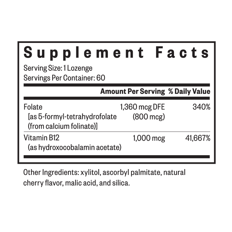 Hydroxo B12 with Folinic Acid provides a potent dose of methyl-free folate and vitamin B12 in a delicious, well-digested lozenge.†