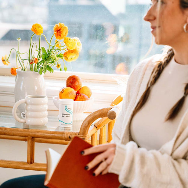 HistaminX supports the healthy storage of histamine inside your cells. This is important because if histamine is inside your cells, it cannot contribute to histamine intolerance. Histamine has to be released from your cells and bind to your histamine receptors in order to cause a histamine response. So, by taking HistaminX, you’re supporting healthy storage of histamine so it stays in your cell versus leaking out and activating a histamine response. Take a serving of HistaminX as needed anytime of day or night. For best results, it should be taken every day especially during troublesome seasons.†