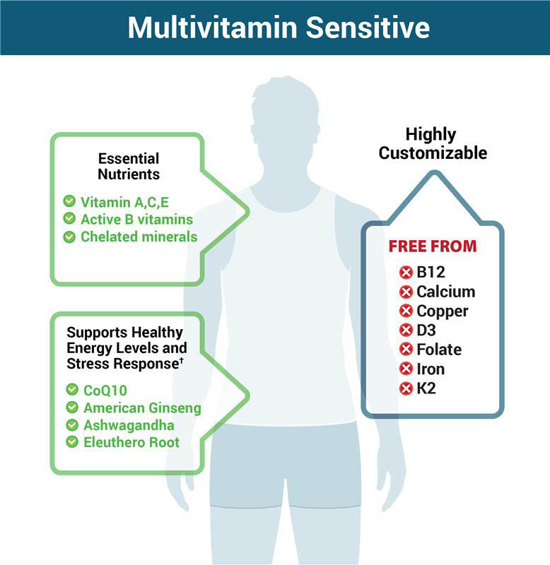 Multivitamin One Sensitive is a strategically formulated multivitamin that allows sensitive individuals to get what they need - and avoid what they don’t.