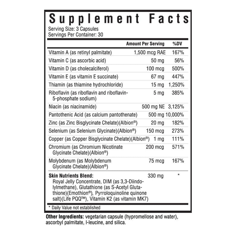 Important: Skin Nutrients replaces your multivitamin, trace minerals, and B complex. Unless advised otherwise by your health professional, stop using these.