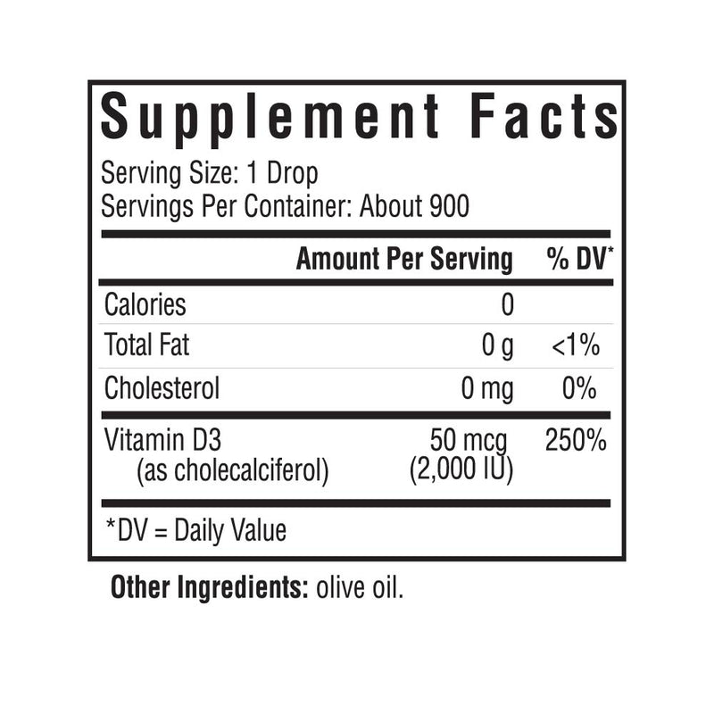 Vitamin D3 Drops provide a potent 50 mcg (2,000 IU) serving of the active form of vitamin D3 per single droplet.
